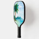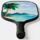 Belle aquarelle de plage de l'océan, palmier tropical et ciel bleu. Elégant et chic pour tout joueur de pickleball qui aime une scène de paradis tropical.