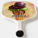 Servez-vous un peu de douceur avec notre raquette de pickleball avec une aquarelle dynamique de chocolat à la menthe et crème glacée à la fraise dans un cône, dressée contre un arrière - plan rêveur rose, jaune et orange - avec un nom personnalisable pour une touche personnelle!