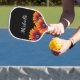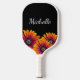 Boho Rustic personnalisé Pickleball paddle, avec une marguerite colorée design sur un arrière - plan noir. Avec des lettres de script personnalisables, vous pouvez ajouter votre propre nom. Idéal pour ajouter une touche élégante à votre jeu favori.