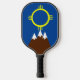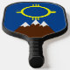 Cette pagaie à pickleball a une conception amérindienne inspirée des montagnes en marron et le soleil en jaune en l'honneur du mois du patrimoine amérindien. La montagne symbolise la destination, et le soleil symbolise le bonheur.