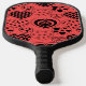 Cette pagaie à pickleball a un design de Saint Valentin de coeurs répétitifs avec différents graphismes à l'intérieur sur un champ de blanc.