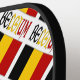 Le drapeau belge est un tricolore de trois bandes verticales de noir, jaune et rouge. Cette pagaie de pickleball présente le mot BELGIQUE sous le drapeau dans les couleurs du drapeau. Le design est carrelé pour une valeur esthétique. Une fractale souvent de carrés blancs forment un espace où vous pouvez ajouter votre nom pour un look personnalisé. Si vous avez besoin de créer un cadeau customisé, ajoutez simplement le nom de quelqu'un d'autre.