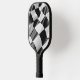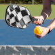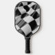 Pagaie de Pickleball avec image de drapeaux de course noir et blanc.