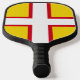 Pickleball Paddle avec design avec un drapeau du comté historique de Dorset, en Angleterre, Grande-Bretagne; drapeau jaune avec croix blanche avec une frontière rouge