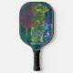 Cette pagaie à pickleball présente un design artistique et dynamique. La surface est recouverte d'un motif de tourbillons de peinture dans différentes nuances de vert, rouge et orange, avec des touches audacieuses de couleur vive tout au long de l'arrière - plan bleu ardoise, créant un sentiment de mouvement et de profondeur.