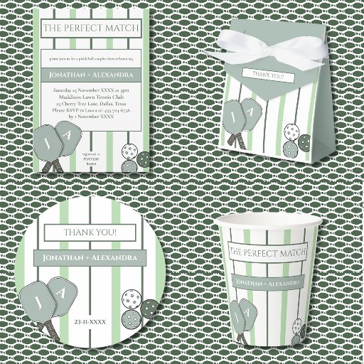 couples showerpickleballbridal showerthe perfect matchtennis themekim ann designsgreen and whitestripesmatch made in heavensocial club