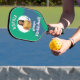 Une pagaie moderne et branchée pour jouer au pickleball, pour personnaliser avec une photo et un nom sur un arrière - plan vert vibrant