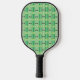 Cette pagaie à pickleball a un design moderne du milieu du siècle de lignes verticales vertes avec des rectangles au-dessus, répétée sur le design.