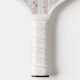 Délicat motif floral Carbon Pickleball - Le motif floral romantique avec des fleurs délicates rose et jaune avec des feuilles verts éparpillés sur un arrière - plan de rayures roses et blanches. Les rayures blanches sont bordées d'une bordure décorative en dentelle. L'arrière est habillée d'un arrière - plan rose pastel uni et solide, qui donne au design un look propre, moderne et polyvalent qui se marie parfaitement avec le motif à l'avant.
