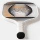 Cette belle pagaie de pickleball est décorée d'une imitation d'acier brossé très réaliste avec des ombres et des points forts. Au milieu, comme une ouverture de coeur, le métal s'ouvre pour révéler votre monogramme, écrit avec de belles lettres en script et sans serif fonts, élégamment entrelacé et dont les ombres et les lumières imitent l'embossage et la gravure. Un objet très moderne et beau qui surprendra tout le monde où que vous jouiez.