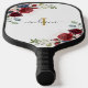 Raquette De Pickleball Monogramme floral Script Nom initial Bourgogne
