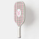 Cette mignonne pagaie monogrammée à pickleball présente un motif classique en plaid dans des tons préppy de rose, vert et blanc. Personnalisez le monogramme rose et vert correspondant avec votre choix d'initiale sur le devant et le nom ou le texte spécial sur le dos.