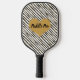 Cette pagaie moderne à pickleball a un motif rayé en diagonale noir et blanc avec de petits points dorés sur le dessus avec un grand coeur en or central avec des lettres personnalisables en noir sur l'avant et l'arrière. Le côté avant dit, "Pour l'amour de ça !" et le dos dit, "Paddle Pro" mais vous pouvez changer de côté pour dire ce que vous voulez qu'ils fassent. Envoyez un courriel à niteowlstudio@gmail.com avec toute demande de modification.