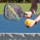 Raquette De Pickleball Nom Abstrait Floral Macro bleu jaune