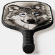 Pickleball pagaie avec l'image d'un loup aux yeux bleus.