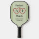 Pagaie monogramme "Parfait Match" avec un grand thème mariage. Une façon amusante de célébrer votre mariage. Ajoutez le monogramme, le nom, les initiales, l'expression et la date souhaités à la pagaie de pickleball. Design moderne avec des couleurs vert sage avec des coeurs rouges. Utilisez le modèle pour créer votre propre pagaie monogramme.