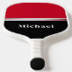 Cette pagaie de pickleball est simple, moderne, minimaliste mais audacieuse et colorée avec ses rayures rouges et noires et votre nom.