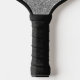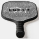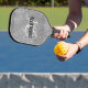 Stylish silver glitter white script monogram black name women's pickleball paddle. Personalize with your name and initial.