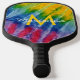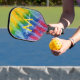 Pagaie de Pickleball Monogrammé Personnalisée avec teinture à cravate rouge, bleu, vert et jaune motif et écriture manuscrite décontractée police de calligraphie.