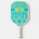 Raquette De Pickleball Turquoise personnalisé, Lime Damask, Stripes Monog
