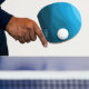 Raquette De Ping Pong Bleu ondulé océan style rétro vagues design