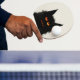 Il s'agit d'une pagaie de ping-pong minimaliste avec une illustration plate d'un chat grincheux noir. Vous pouvez customiser le texte !