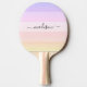Paddle de ping-pong moderne avec des rayures pastel de couleur arc-en-ciel et un élégant nom de script écrit à la main. Personnalisez avec votre nom.