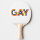 Cette oeuvre d'art présente le mot Gay dans une police couleur arc-en-ciel.