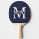 Raquette De Ping Pong Monogramme et nom personnalisés bleu marine