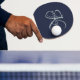 Raquette De Ping Pong Monogramme moderne élégant Script Marine Bleu