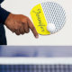 Motif moderne rayé blanc, bleu et jaune avec nom personnalisé