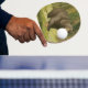 Raquette De Ping Pong Ours noir sur un tronc d'arbre