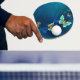 Raquette De Ping Pong Papillons d'or sur un Arrière - plan bleu