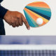 Illustration motif géométrique de rayons de soleil de style rétro avec rayures jaunes, orange, bleues et turquoise