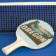 Ping pong paddle design caractéristiques rétro artistique Oregon silhouette d'état avec texte sur bleu clair arrière - plan