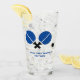 Raquettes de ping-pong de ping-pong et verre de table de ping-pong bleu et bleu sur mesure qui affiche un pictogramme minimaliste icône de raquettes de ping-pong bleu noir et boule.