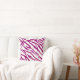 Purple and White Zebra Stripe Pattern Pillow. Perfect for New Baby Girl's Safari Jungle Nursery Decor or Big Girl's Room Decor or Teen Girl Room Decor or even Mom's She Shack Decor. Change the background colour (the pink) to any colour by clicking customize then edit. Scroll down to Use the last tool labelled "background" click on edit to choose from the swatches shown or click the plus (+) sign to enter you RGB Hex Code in the lower right hand field or drag the dot to find you colour. Just search on the Internet for RGB Hex Code to find your colour and make a one of a kind designer pillow with your custom colour. If you prefer to personalize then you can add a text field or nameplate field by clicking edit/customize/personalize further. A single animal print accessory will create an instant focal point. This zebra stripe pillow will draw the focus to the centre of the room and contrast any palette and anchor the room's design.