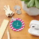 Fresh and fun raspberry pink chevron stripes with a pop of retro teal. Personalize with initial.