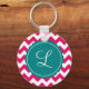 Raspberry and Teal Zig Zag Custom Initial Keychain