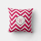 Raspberry Chevron Stripes with Custom Monogram Throw Pillow