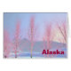 Digital painting of snow-covered birch trees; the snow tinged pink by the setting sun. Text reading "Alaska" also appears. Here in the north it is common to see snow covered trees tinged either pink or orange by the sun hanging low on the horizon.