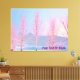 A digital painting of snow-covered birch trees (Betula papyrifera) tinged pink by the setting sun. Add your own text.