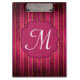 Raspberry Gold Stripe Monogram Initial Clip Board