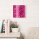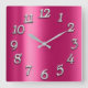 Raspberry Pink Metallic Minimal Silver Fuchsia Square Wall Clock