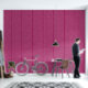 A raspberry red and white large butcher stripe wallpaper.
