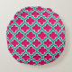 Raspberry Teal White Moroccan Quatrefoil #5DS Round Pillow