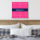 Raspberry White Polka Dots Navy Blue Name Monogram Canvas Print