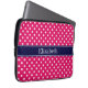 Raspberry White Polka Dots Navy Blue Name Monogram Laptop Sleeve