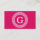 Raspberry Wht Greek Key Rnd Frame Initial Monogram Business Card