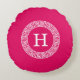 Raspberry Wht Greek Key Rnd Frame Initial Monogram Round Pillow